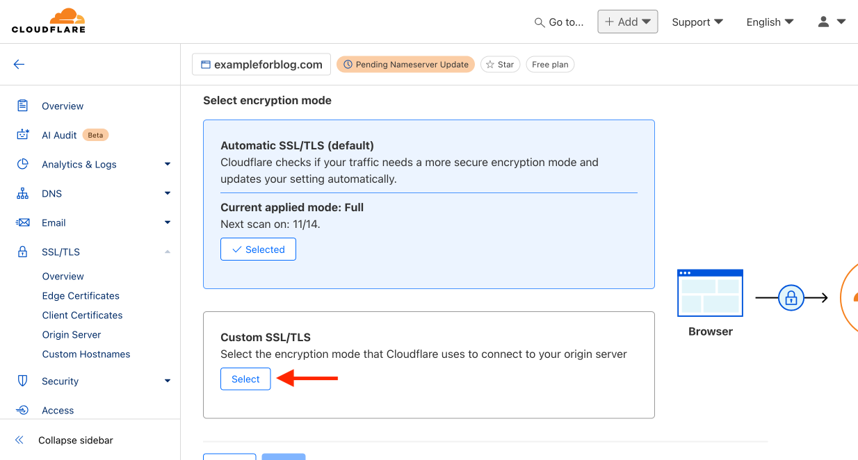 W okienku podpisanym Custom SSL/TLS naciskamy przycisk Select.