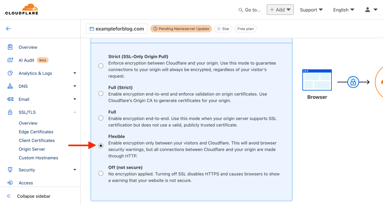 Zmieniamy opcję z Full na Flexible i potwierdzamy wybór przyciskiem Save.