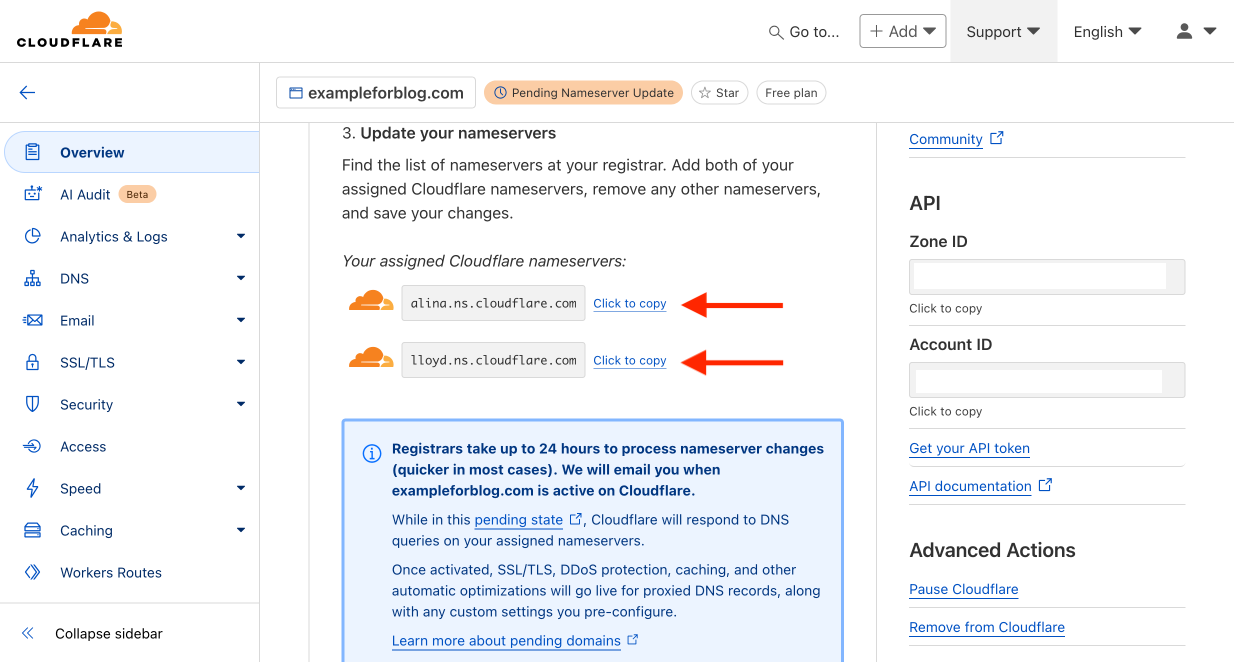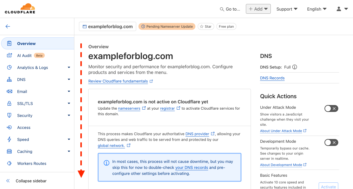 Gotowe. Możemy się już wylogować z Cloudflare i przejść do następnego kroku.