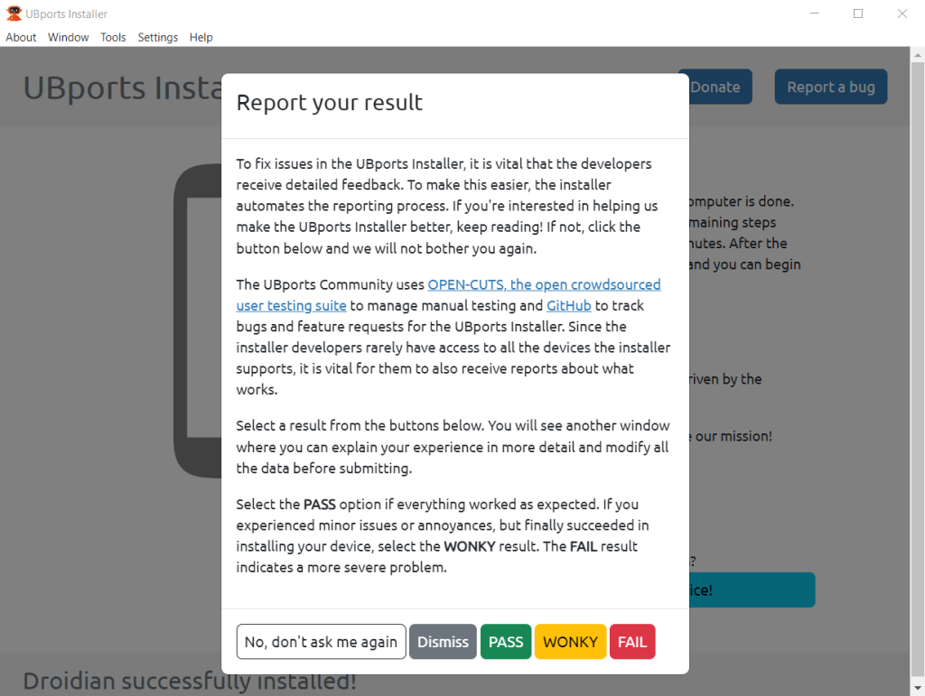 Interestingly, Droidian can be installed using the same program as Ubuntu Touch - UBports Installer. Just like in the case of Ubuntu Touch, I will show the process using screenshots below.