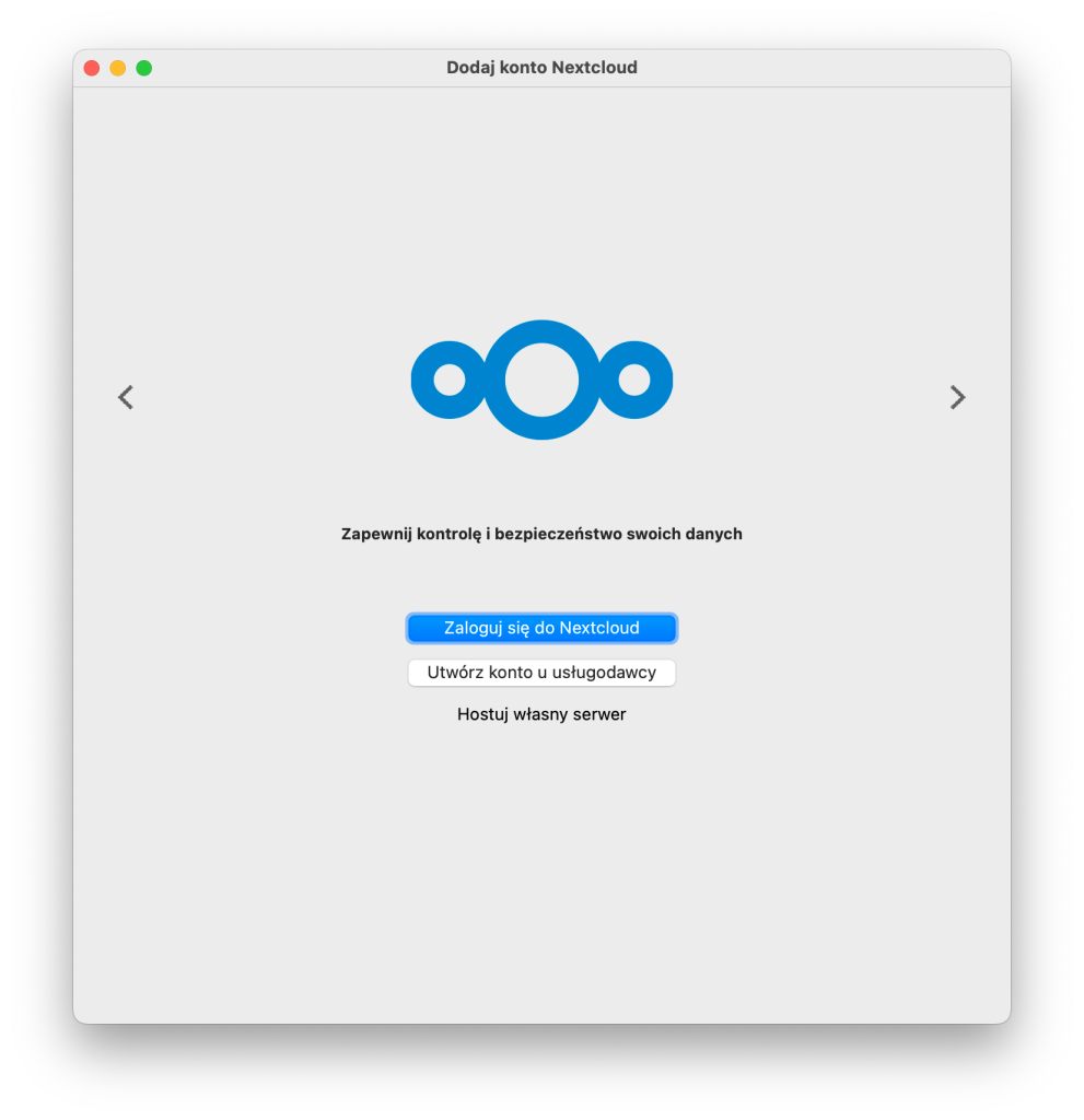 Aplikacje dedykowane Nextcloud są dostępne dla Windowsa, Linuxa, macOS, Androida i iOS. Wszystkie są dostępne po tym linkiem. Instalacja na każdym z systemów jest bliźniacza, więc pokażę cały proces na systemie macOS. Po zainstalowaniu adekwatnej aplikacji odpalamy ją i na start otrzymujemy okno, w którym wybieramy przycisk Zaloguj się do Nextcloud. W następnym oknie jesteśmy proszeni o wpisanie adresu serwera, więc podajemy go i potwierdzamy przyciskiem Dalej >.