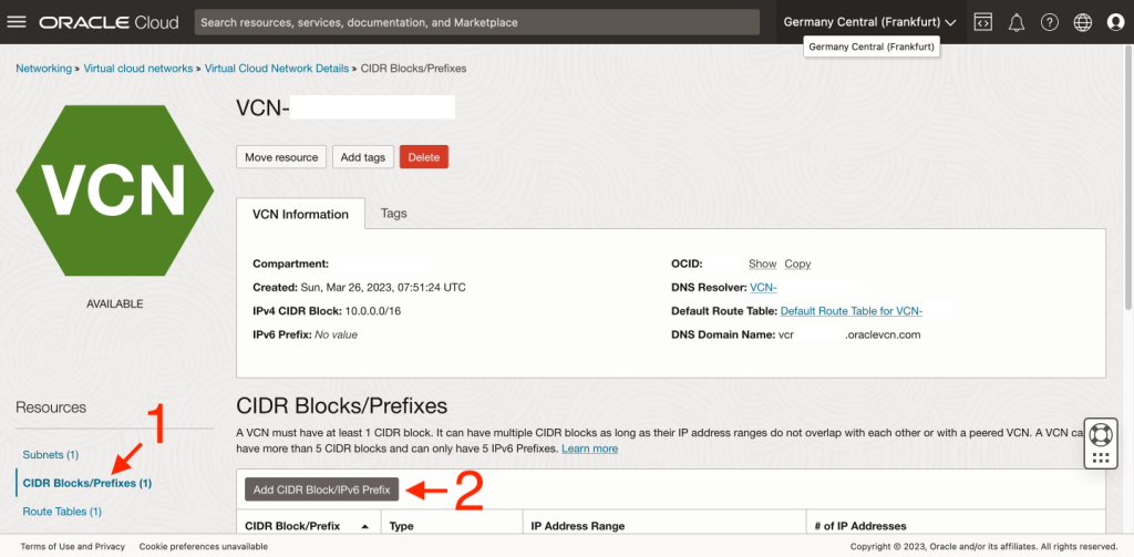 W sekcji po lewej stronie znajdujemy na liście CIDR Blocks/Prefixes [1].