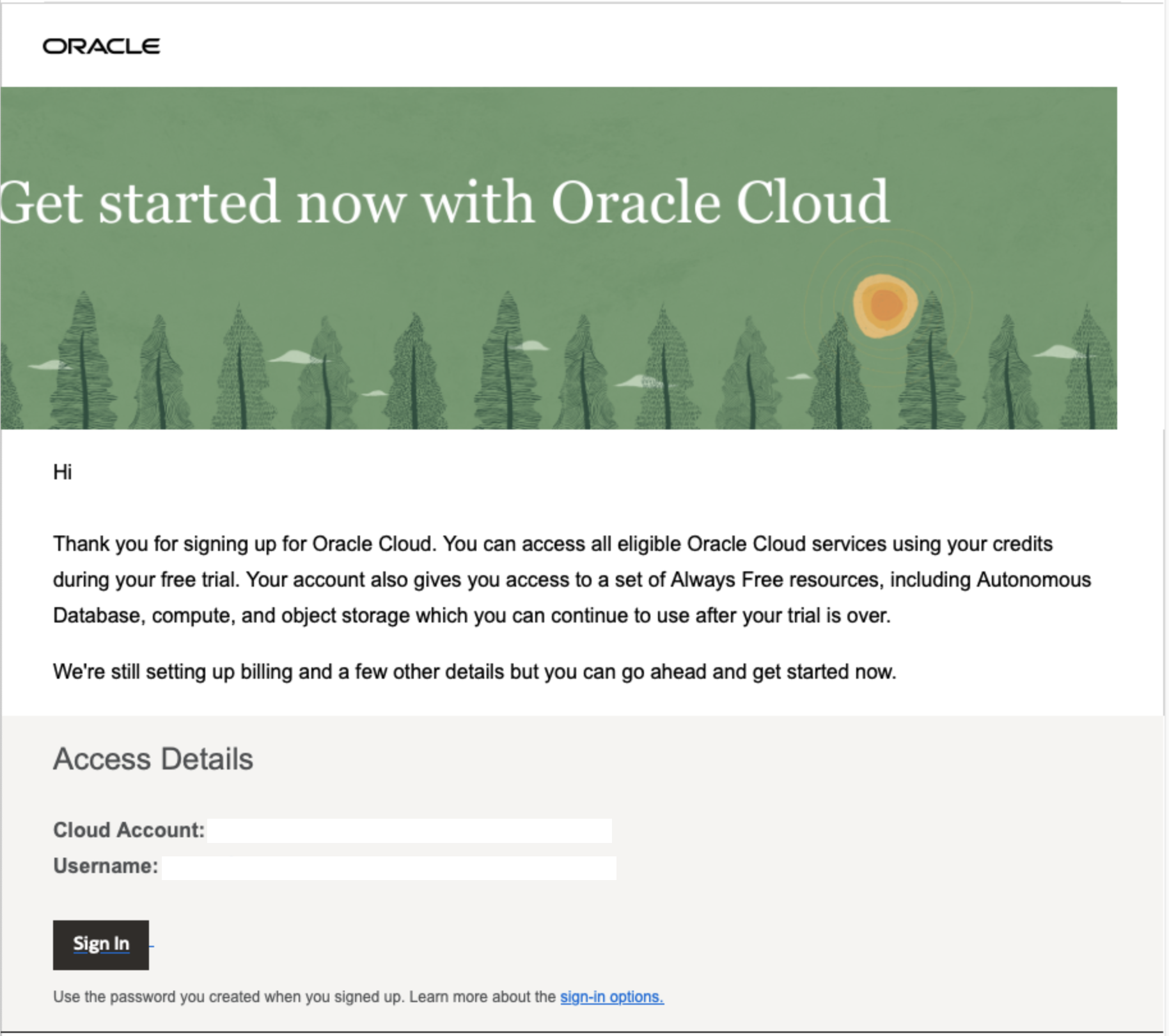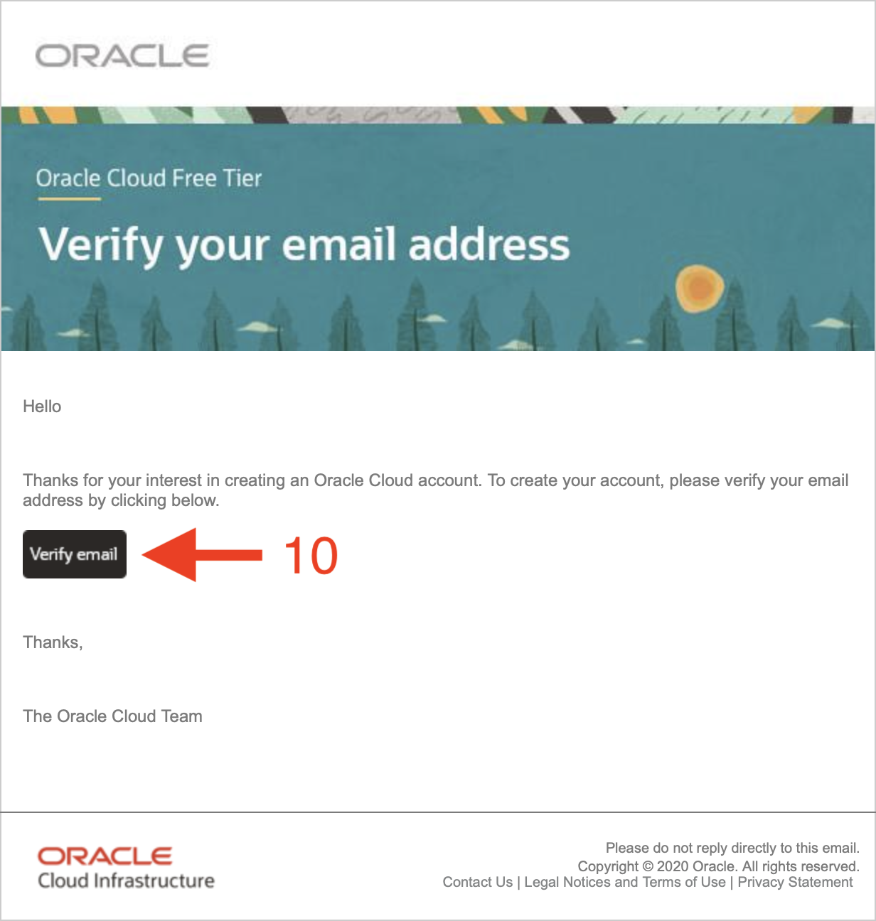 Wchodzimy do naszej skrzynki mailowej i czekamy na maila od Oracle, w którym będzie przycisk do potwierdzenia swojego adresu e-mail [10]. Tutaj sprawa w moim przypadku była o tyle ciekawa, że strasznie długo musiałem czekać aż ten mail dojdzie. Niby podają na stronie, że jego ważność to 30 minut, ale ja na pewno kliknąłem w niego później, a i tak proces się udał. Tak czy siak możliwe, że trzeba będzie uzbroić się w cierpliwość, bo system rejestracji Oracle wydaje mi się mocno zabugowanym narzędziem… Ale spokojnie można przejść w tym czasie do robienia czegoś zupełnie innego i nawet zamknąć kartę z formularzem rejestracyjnym Oracle Cloud, bo po kliknięciu w link z maila i tak wrócimy tam gdzie skończyliśmy.
