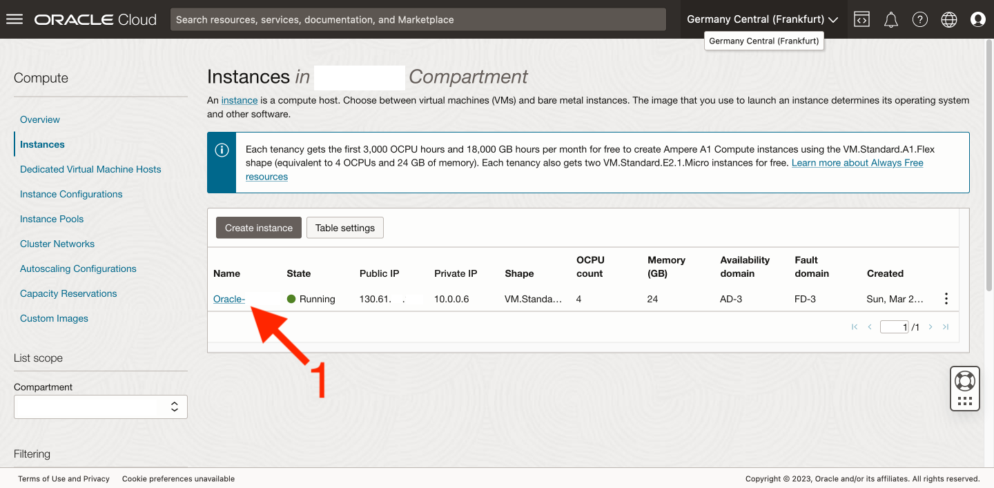 Oracle nazywa maszyny wirtualne instancjami. W tym rozdziale stworzymy dokładnie taką maszynę jak w tytule tego wpisu oraz opisaną w jednym z powyższych rozdziałów.