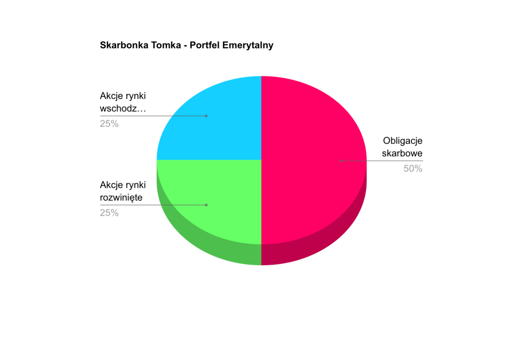 This portfolio will be inherently slightly more aggressive since I still have some time until I reach the age of 65 and can experiment a bit. This is a well-known tactic that involves adjusting the risk level depending on one’s age. This system assumes that a 20-year-old should invest only 20% of their savings in assets considered safe (e.g., bonds, deposits, or gold) and as much as 80% in assets with a much higher risk level (e.g., stocks, commodities, or currencies). Similarly, for an 80-year-old, this proportion would be reversed, i.e., 80% safe, and 20% risky. Assuming these premises, only a 100-year-old should switch everything to bonds. Of course, I don’t plan to be that crazy, so I’ve decided to split this portfolio 50/50. 50% of its value will consist of treasury bonds dressed in a tax umbrella such as IKE (which I’ve written about before), and the other half will be invested in stocks in the most diversified way possible. I’ll expand on this topic in one of the upcoming posts that I have planned. So, I envision the model composition of the Retirement Portfolio as follows - 50% treasury bonds, 25% stocks of developed world markets, 25% stocks of emerging markets.