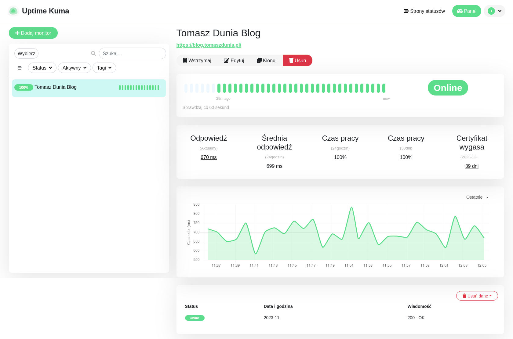 Of course, I have shown only the basic and simplest application. Uptime Kuma allows for much more. For example, you can: