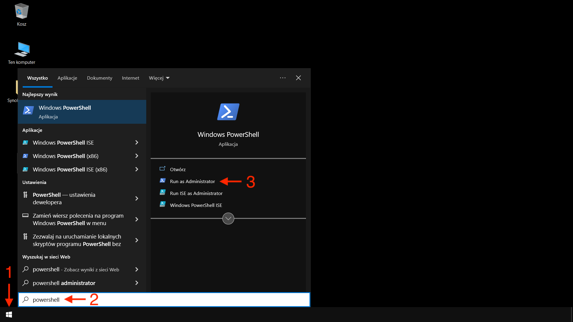 Wchodzimy do PowerShell鈥檃, czyli windowsowego terminala. Istotne jest, aby uruchomi膰 go jako administrator.